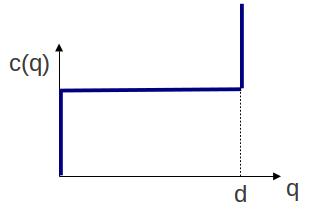 Il en est de même pour une nouvelle puce en microélectronique (mémoire, microprocesseur etc.) : le coût initial (conception de la puce, puis conception et fabrication des équipements nécessaires pour la reproduire) est élevé mais le coût marginal d’une puce est négligeable car le silicium ne coûte pratiquement rien et sa production, automatisée, emploie peu de personnes (dans les deux graphiques ci-dessous, q est la quantité produite – nombre de puces, de reproductions du logiciel etc. – et c(q) est le coût de production de la quantité q).